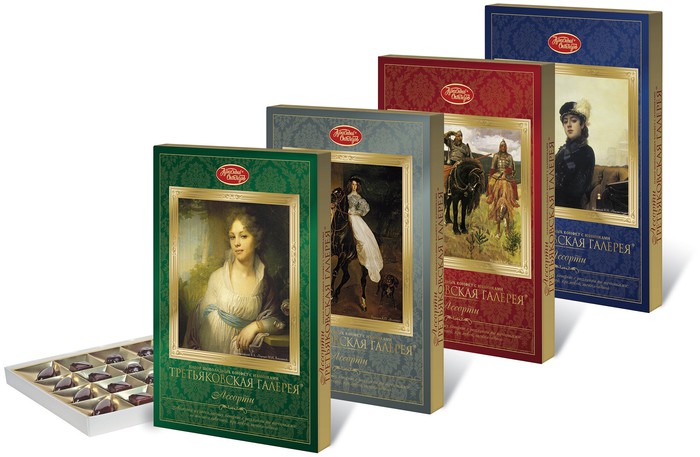 Конфеты Ассорти «Третьяковская галерея» – это удовольствие от вкуса и созерцания шедевров живописи в одном флаконе. Коробка с несколькими вариантами оформления, изюминка которого – репродукции картин знаменитых российских художников. Внутри – три вида конфет, покрытых настоящим темным шоколадом: с помадно-сливочной, кремовой и шоколадной начинкой.