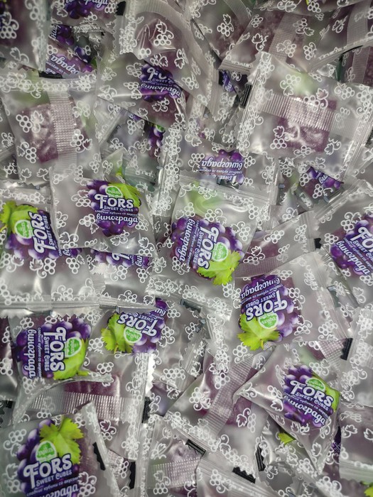 Изготовлено из мусса, нежного и ароматного манго, клубники, ананаса или виноградаСостав сок фрукта, глюкозный сироп, сахар, каррагинан, лимонная кислота, краситель натуральный лимонный, усилитель вкуса