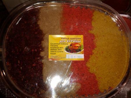 состав: карри, паприка, кориандр, тимьян, чили, перец черный молотый, розмарин, хмели-сунели