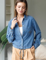 22.03 Vilatte Укороченная блузка с коротким рукавом из джинсового лиоцелла D59.