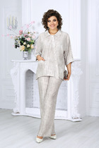 Костюм женский из кулирного полотна состоит из кофты и брюк. Кофта прямой силуэт, горловина круглая, обработана окантовкой, рукав реглан длинный, на манжете, низ изделия обработан на плоскошовной машине, на полочке принт. Брюки прямые, верх на поясе с резинкой и завязка бантик, низ на манжете, в боковых швах внутренние карманы, на передних половинках принт