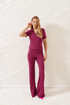 Костюм состоит из брюк и кофты. Брючки на поясе с прорезными карманами в боковых швах, снизу на манжетах. Кофта с длинным рукавом, горловина обработана обтачкой, на полочке печать.