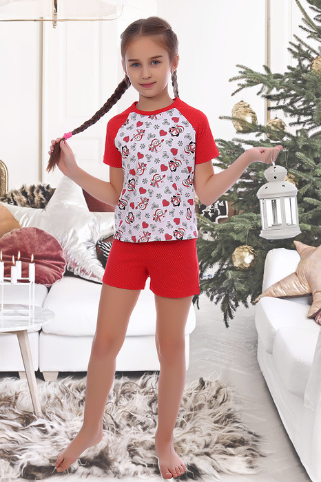 В детском гардеробе обязательно должна присутствовать пижама. В ней спать очень удобно и комфортно. Комплект состоит из футболки покроя "реглан" и шортиков. Горловина футболки обработана бейкой. Шортики на резинке.