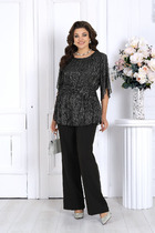 Женский комплект спортивного костюма. Свитшот, полочка и спинка доходят до линии бедер. В верхней и нижней частях полочки и спинки располагаются фигурные вставки контрастного цвета. Горловина обработана обтачкой в цвет основного материала, низ - поясом из рибаны. Рукава рубашечного покроя длиной до запястья, со вставками из ткани отделки, с манжетами из рибаны в цвет основного материала. Брюки спортивные прямые. Нижний срез обработан манжетами из рибаны. По боковым швам лампасы из ткани контрастного цвета шириной 4 см. Верхний срез обработан притачным поясом с эластичной тесьмой шириной 3 см и шнуром. Имеются боковые карманы на передних половинках.