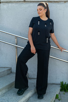 Стильный костюм, состоящий из жакета и брюк на все случаи жизни! Идеально сочетает в себе элементы классического и спортивного дизайна одежды, изготовленный из качественного трикотажа на весенне-летний период. Жакет в классическом стиле со спортивным капюшоном декорирован яркой тесьмой, модные лампасы по рукавам, клапаны-отделочный элемент. Брюки можно носить, как классические, а можно сделать современные отвороты. На брюках два кармана, пояс на резинке украшен шнурком в тон лампас. Прекрасно сочетается со стильными элегантными туфлями, ботильонами, кроссовками. Такой вариант несомненно дополнит гардероб любой модницы! Состав трикотажа: 75% хлопок, 20% полиэстер, 5% спандекс. (Внизу под главной фотографией и таблицей вы можете посмотреть детальные фото изделий).