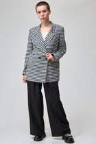 Блистать всегда и везде – девиз этого года, который воплотить в жизнь поможет костюм с люрексом. Костюм, состоящий из блузона и брюк. Такой вариант обязательно оценят девушки, которые любят привлекать к себе внимание. Еще в том году, брюки с лампасами были в новинку, а в этом сезоне они стали частым гостем в повседневных образах. В них кроется особая прелесть, наверное, потому что они позволяют привычным вещам играть по-новому, более интересно. Вертикальные полоски отлично удлиняют силуэт, а это еще один плюс в копилку этой модной вещи. Состав трикотажа: 75% хлопок, 20% полиэстер, 5% спандекс.