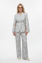 Стильный и практичный комплект, состоит из блузки и кюлот. Блузка прямого силуэта, выполнена из натуральной вискозы. Блузка с округлым вырезом горловины, декорирована дизайнерской печатью. Рукав цельнокроеный, приспущенный. Кюлоты выполнены из вискозы с модным принтом в полоску, на поясе, по переду с застежкой на молнию и пуговицу, в боковых швах функциональные карманы. В комплекте к кюлотам идет пояс из основной ткани. Модель удобная и практичная, отлично подойдет для ежедневной носки в жаркое время.