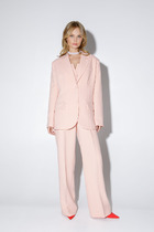 Элегантный и стильный костюм тройка! Его стиль, утончённость делает женщину поистине элегантной. Костюм состоит из жакета, блузки и юбки. Жакет полуприлегающего силуэта без воротника с застёжкой на петлю и пуговицу. По переду нагрудные и талиевые вытачки, придающие легкое приталивание и подчеркивающие фигуру. В качестве декоративной отделки съемная тесьма с перьями и настрочные клапаны. Спинка в жакете со средним швом без особенностей. Рукав втачной, одношовный, длинный. Жакет на подкладке. Блузка прямого силуэта с округлым везом и нагрудными вытачками. Рукав втачной короткий. Спинка без особенностей. Юбка слегка зауженная к низу с цельнокроеным поясом по переду и спинке. В поясе по бокам для максимального комфорта предусмотрена резинка. Застёжка по спинке на молнию в среднем шве. В среднем шве по низу отлетная шлица. Юбка на подкладке. Длина жакета 56 см, длина рукава 60 см, длина юбки 68см. Длина блузки 63см, длина рукава блузки 30см.