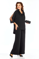 Юбка-брюки прямого силуэта, с притачным поясом на резинке: юбка по переду с мягкой складкой смещённой влево, по левому боковому с разрезом, декорированный отделочной тесьмой, правый боковой отлетной, брюки по боковым швам с разрезами (выполнены из трик. полотна).