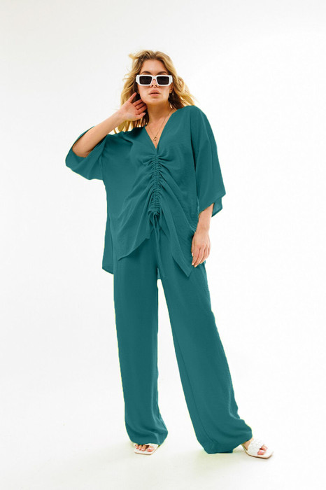 Туника свободного кроя с кулисой по переду. В боковых швах разрезы.