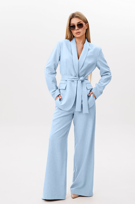 Жакет прилегающего силуэта с воротником "Шаль". По переду действующие прорезные карманы с клапаном. Рукав втачной двухшовный. По низу рукава отлетная шлица. Жакет на подкладке, с поясом из основной ткани. Застежка на петлю пуговицу.