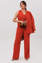 Жакет свободного силуэта с застежкой по переду на кнопки. Воротник отложной. По переду отрезные кокетки, накладные карманы с клапанами. По спинке кокетка и рельефы. Рукав двухшовный с притачной манжетой на кнопках. Низ жакета на притачном поясе.
