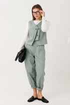 Костюм трехпредметный, состоящий из брюк, жакета и галстука.