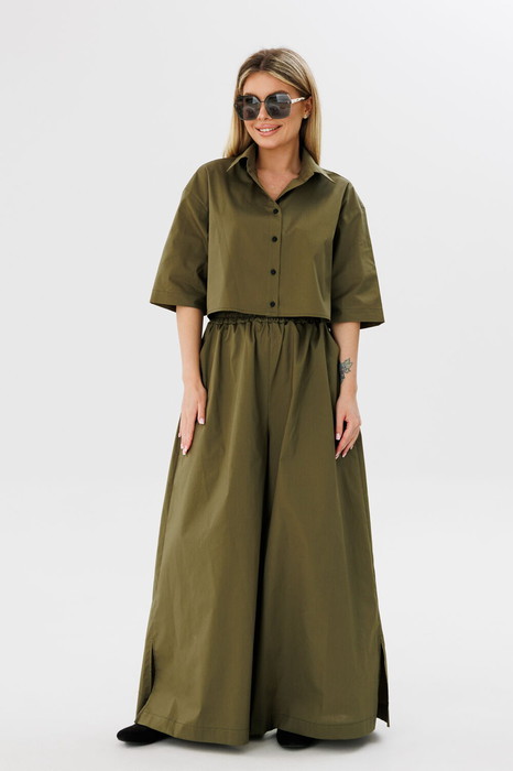 Юбка-брюки свободного силуэта. Пояс на резинке. По низу брюк в боковых швах разрезы.
