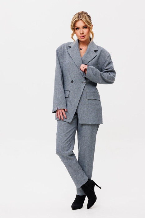 Жакет женский свободного силуэта со спущенным плечом. По переду застежка на две пуговицы. Рукав длинный, по центру рукава декоративный шов с разрезом.