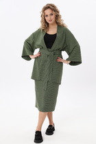 Жакет прямого силуэта, оснащен двухбортной застежкой на петли-пуговицы, что добавляет образу официальности. Детализированный дизайн включает нагрудную вытачку, переходящую в прорезной карман с клапаном на передней части, и фигурный рельеф на спинке с щлицей, обеспечивающий отличную посадку по фигуре. Рукав жакета двухшовный, подчеркивающий линии рук. Жакет на подкладке для дополнительного комфорта.