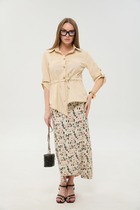 Брюки-кюлоты, свободный силуэт и умеренный объем обеспечивают максимальный комфорт. В боковых швах обработан карман с отрезным бочком, застёжка центральная на молнию и петлю и пуговицу. Верхний срез брюк обработан притачным поясом с шлёвками для ремня, для идеальной посадки по спинке вставлена эластичная тесьма.