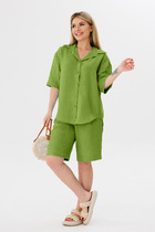 Костюм женский 2-х предметный: жакет на подкладке и брюки. Жакет полуприлегающего силуэта: бочок с выточкой по полочеке, по спинке средний шов. Застежка двухбортная, карман клапан "обманка". Рукав вточной двухшовный. Брюки прямые со стрелками. Застежка по передней части на молнию. Пояс отрзной, по бокам вставлена резинка. Длина жакета: (48-52)73см, (54-58)-74см . Длина рукава: (48-58)-62см. Длина брюк: (48-52)-105 см, (54-58)- 107см