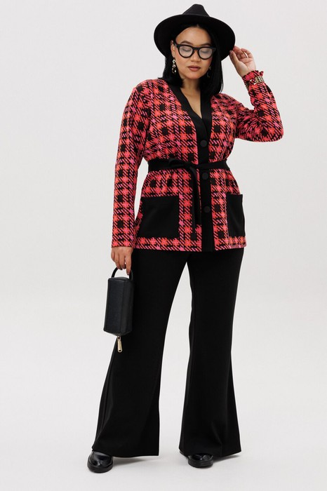 Шикарный трикотажный женский комплект от бренда Anastasia, идеальный для любого случая. Этот комплект сочетает в себе элегантность и комфорт, что делает его подходящим как для деловых встреч или прогулок. Комплект состоит из жакета и брюк. Жакет прямого силуэта. Застежка- планка с пуговицами. По полочке идут накладные карманы. Рукав втачной, одношовный. Подчеркнуть талию можно съемным поясом. В качестве декора- брендированная нашивка на кармане, перекликающаяся с золотыми пуговицами. Стильный комплект отлично подойдет для долгих прогулок или для работы, для офиса. Брюки -клеш, пояс на резинке. По внутреннему срезу по низу идут разрезы. Отдельный части костюма легко будут сочетаться с вещами из Вашего гардероба. Модель можно отнести к стилю кэжуал. Костюм можно носить с туфлями, кроссовками или ботинками. Обязательно добавьте наш бренд в избранное и следите за новинками, распродажами, скидками и акциями! Хороших покупок от «Анастасия». Длина (по спинке):(50-54)- 67см, (56-60)-70 см. Длина рукава: (50-60)- 58см. Длина брюк: (50-54):- 102см, (56-60)- 104см.