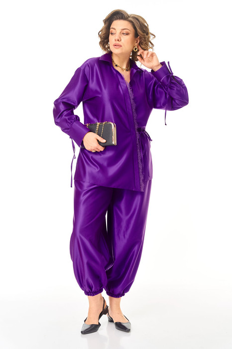 Шикарный костюм от бренда Anastasia, идеальный для любого случая. Этот костюм сочетает в себе элегантность и комфорт, что делает его подходящим как для деловых встреч или прогулок. Комплект состоит из блузки и брюк. Блузка прямого силуэта со спущенным плечом. По бокам разрезы. Рукав со сборкой на манжете и завязками. По полочке идет отрезная планка с отделкой кружевом и застежка в виде запаха с завязками. Воротник на отрезной стойке. Спинка длинее полочки. Брюки - алладины. Свободный фасон от бедра и лёгкое заужение книзу за счет резинки визуально делают ноги стройнее и длиннее. Эластичный пояс и удобные глубокие карманы придают брюкам не только стиль, но и функциональность. По бокам карманы. Благодаря мягкой резинке модель удачно садится практически на любую фигуру. А также в них комфортно весной и летом - практически универсальный вариант. Модель можно отнести к стилю кэжуал. Костюм можно носить с туфлями, кроссовками или ботинками. Обязательно добавьте наш бренд в избранное и следите за новинками, распродажами, скидками и акциями! Хороших покупок от «Анастасия». Длина (по спинке):(48-52)- 76см, (54-58)-79 см. Длина рукава с манжетом: (48-52)-57 см, (54-58)-59см. Длина брюк: (48-52):- 95см, (54-58)- 97см.