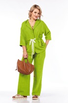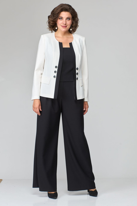 Костюм женский состоящий из топа, жакета и брюк выполнен из однотонной ткани двух контрастных цветов.