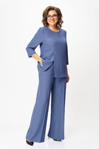 Костюм женский трех предметный, состоящий из жакета, жилета и юбки. Жакет полуприлегающего силуэта с центральной застежкой на петли и пуговицы, с пиджачным воротником, с втачными рукавами. Перед с нагрудными вытачками, отрезными бочками, прорезными карманами «в рамку» с клапаном и прорезным с листочкой.   Спинка с отрезными бочками и средним швом. Рукава двухшовные со шлицей.