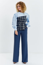 Брюки прямые посадка на талии, на эластичном поясе с резинкой внутри, обработаны боковые карманы. Изюминкой комплекта являются открытые срезы, добавляющие небрежного шика образу. Выполнен в нескольких оттенках.