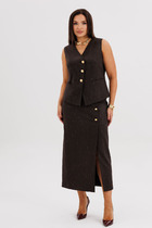 Изюминкой комплекта являются открытые срезы, добавляющие небрежного шика образу.