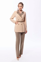 костюм женский из льна. Кимоно оверсайз, длиной до середины бедра. Рукав 3/4, низ широкий на манжете, без застежки. По переду фигурный запах. Талию можно подчеркнуть при помощи съемного пояса или комбинировать с корсетом.