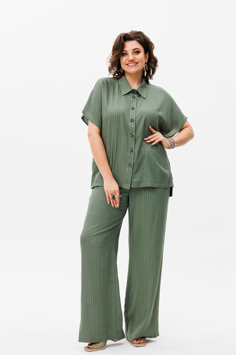 Воплощение стиля и комфорта: льняной костюм с брюками и рубашкой с коротким рукавом от Анелли!
