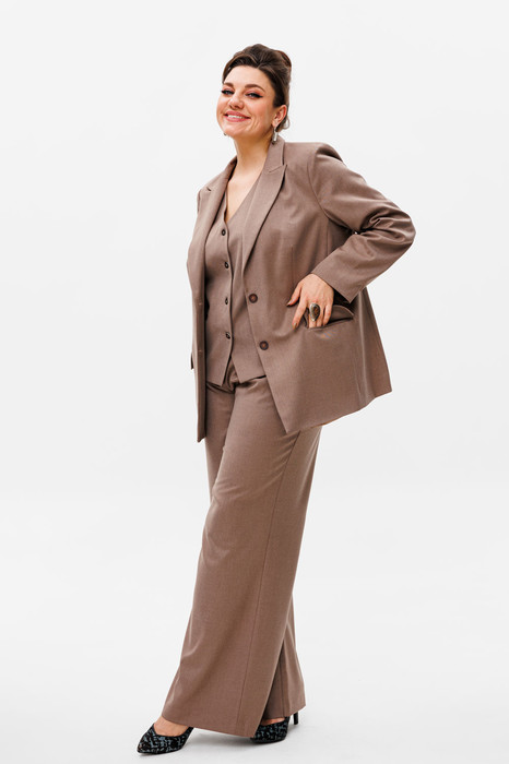 Этот костюм - это шик и универсальность. Жакет бойфренда сочетает в себе элегантность и комфорт, прямые брюки придают вам стройность и уверенность, а жилет завершает образ, добавляя нотку роскоши, брюки на резинке. Все это - актуальная классика, которая никогда не выйдет из моды.