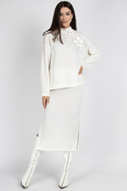 На модели в костюме цвета «портвейн роял» белая рубашка 1203.1 и голубой джемпер 1509.