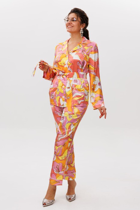 Этот костюм «тропикана» — идеальный баланс между уютом и элегантностью. Созданный в гармоничном сочетании оттенков, он дарит ощущение мягкого шика, не уступая в изысканности.
