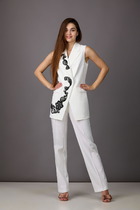 Жакет безупречного кроя, на удобной подкладке, мягко облегает фигуру, создавая собранный и стильный образ. Брюки с эффектными разрезами внизу добавляют динамики и лёгкости каждому шагу, делая силуэт одновременно строгим и необычным.