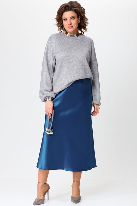 Модный женский комплект из атласной юбки и свободного джемпера с люрексом — это стильное и комфортное решение для создания как повседневных, так и вечерних образов.