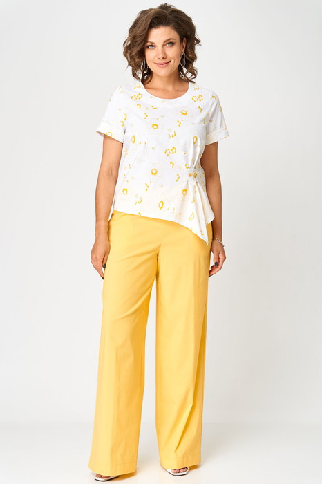 Базовый брючный комплект, состоящий из оригинальной блузки и ярких брюк-палаццо. Блузка с элегантными защипами по талии подчеркнет Вашу женственность и романтичность. Комплект идеально подойдет для рабочих будней в летний период, а также для дружеских встреч и романтических прогулок.