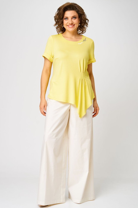 Базовый брючный комплект, состоящий из оригинальной трикотажной блузки и широких брюк-палаццо. Блузка с элегантными защипами по талии подчеркнет Вашу женственность и романтичность. Комплект идеально подойдет для рабочих будней в летний период, а также для дружеских встреч и романтических прогулок.
