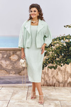 Однобортный жакет полуприталенного силуэта, на подкладке, с плечевыми накладками. Воротник пиджачного типа с отложными лацканами. По переду центральная застежка на петли и пуговицы и прорезные карманы с клапаном, талиевые вытачки и рельефы. Полочку жакета украшает съемная (на пуговицах) декоративная рюша с кружевом. Низ бортов закругленной формы. Спинка со средним швом и рельефами. Рукав втачной двухшовный длинный.