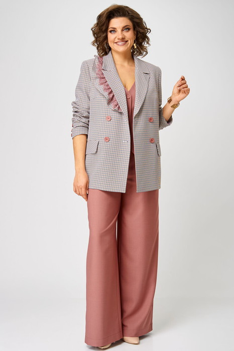 Стильный брючный комплект-тройка с удлиненным жакетом в клетку станет отличным дополнением Вашего осеннего гардероба.
