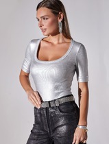 Футболка облегающая из хлопка в рубчик с U вырезом и матовым покрытием металлик