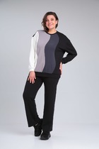 Этот 3-х предметный комплект состоит из жакета, корсетного топа и брюк. Жакет без подкладки, швы обработаны кантом в цвет изделия. Рукав втачной, прямой, одношовный. Воротник шаль. Застежка на притачной пояс, дополнен съёмной пряжкой золотистого цвета. Корсетный топ с открытыми плечами — воплощение чувственной элегантности. Открытые плечи подчеркивают линию шеи и ключиц, а корсетный крой создает безупречный силуэт. Роскошный силуэт и акцентная баска делают его идеальным выбором для особенного вечера. Также топ отлично вписывается в повседневные образы. Брюки станут глотком свежего воздуха среди широких силуэтов и брюк палаццо. Их облегающий крой подчёркивает линию бедёр и тали, а затем изящно расклешается от колена.Такой фасон позволит скорректировать фигуру и подойдёт для строго дресс кода. Вертикальные линии по центру брючин вытягивают силуэт и удлиняют ноги. Застёжка классическая - молния и пуговица в цвет изделия.