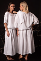 Брюки – из полотна с набивным рисунком, длинные, на притачном поясе с эластичной тесьмой внутри и карманами в боковых швах. Дина в готовом виде по боковым швам.