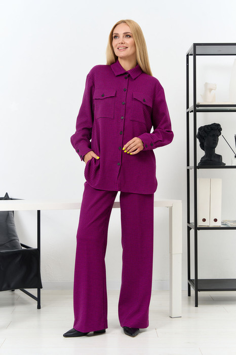 Блузка свободного покроя с воротником на стойке, рукав втачной по низу на манжете, застежка на планке на петли и пуговицы, по переду накладные карманы.