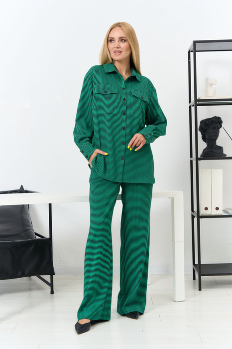 Комплект женский состоит из блузки и брюк.