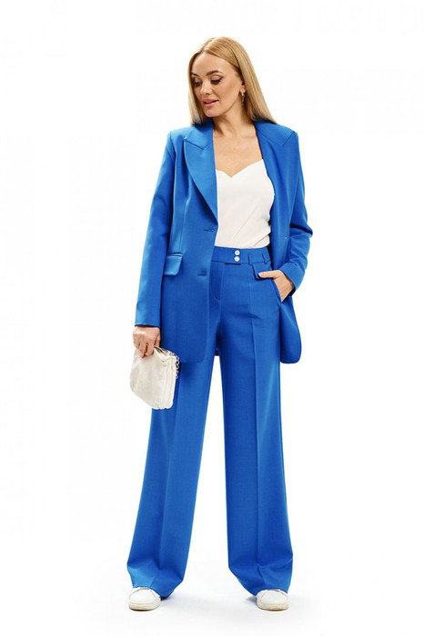 Длина изделия, размеры(42-48): жакет - 76 см, блузка - 43 см, брюки - 113 см; размеры(50-54): жакет - 77 см, блузка - 45 см, брюки - 114 см.