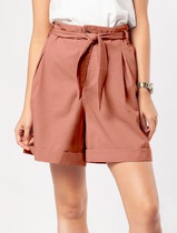 Брюки прямые на цельнокроеном поясе с резинкой по кругу и застроченными кантами спереди.