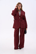 Костюм состоит из 2-х предметов одежды: жакета и брюк. Выполнен из костюмной ткани стильного дизайна в полоску.