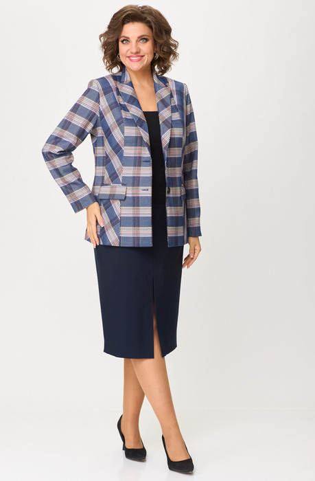 Совместные покупки Каменск-Уральский Женская одежда Костюмы, комплекты — Костюм БелЭльСтиль 412/597 бело-синяя клетка + синий однотон