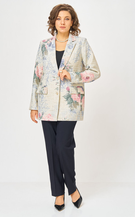 Этот двухпредметный комплект— основа безупречного гардероба.Жакет— воплощение уютной элегантности. Выполненный из фактурного твида, он сочетает в себе непринужденность свободного силуэта и безупречную классику кроя. Идеален для создания как повседневных, так и собранных образов. Воротник пиджачного типа, застежка до линии лацкана и изящные прорезные карманы с клапанами делают образ законченным и утонченным, жакет полностью на подкладке. Длина по спинке 75 см, длина рукава 63 см. Брюки классические прямые с заутюженными стрелками, которые визуально вытягивают силуэт. Скрытая резинка по бокам гарантирует невероятный комфорт, сохраняя безупречный вид спереди. По переду обработаны карманы с отрезным бочком, застежка на тесьму-молнию и 1 пуговицу. На задних половинках обработаны вытачки и имитация карманов с листочкой. Длина брюк от талии по боковому шву 103 см.