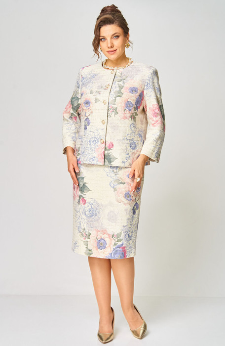 Элегантный комплект на все случаи жизни из твида: классический жакет и прямая юбка.Жакет и юбка созданы в единой стилистике, что избавляет вас от утомительных поисков идеального сочетания. Вы выглядите собранно, стильно. Элегантные детали: Классический округлый вырез горловины, центральная застежка на изящные пуговицы и функциональный карман с листочкой добавляют образу солидности и завершенности.
